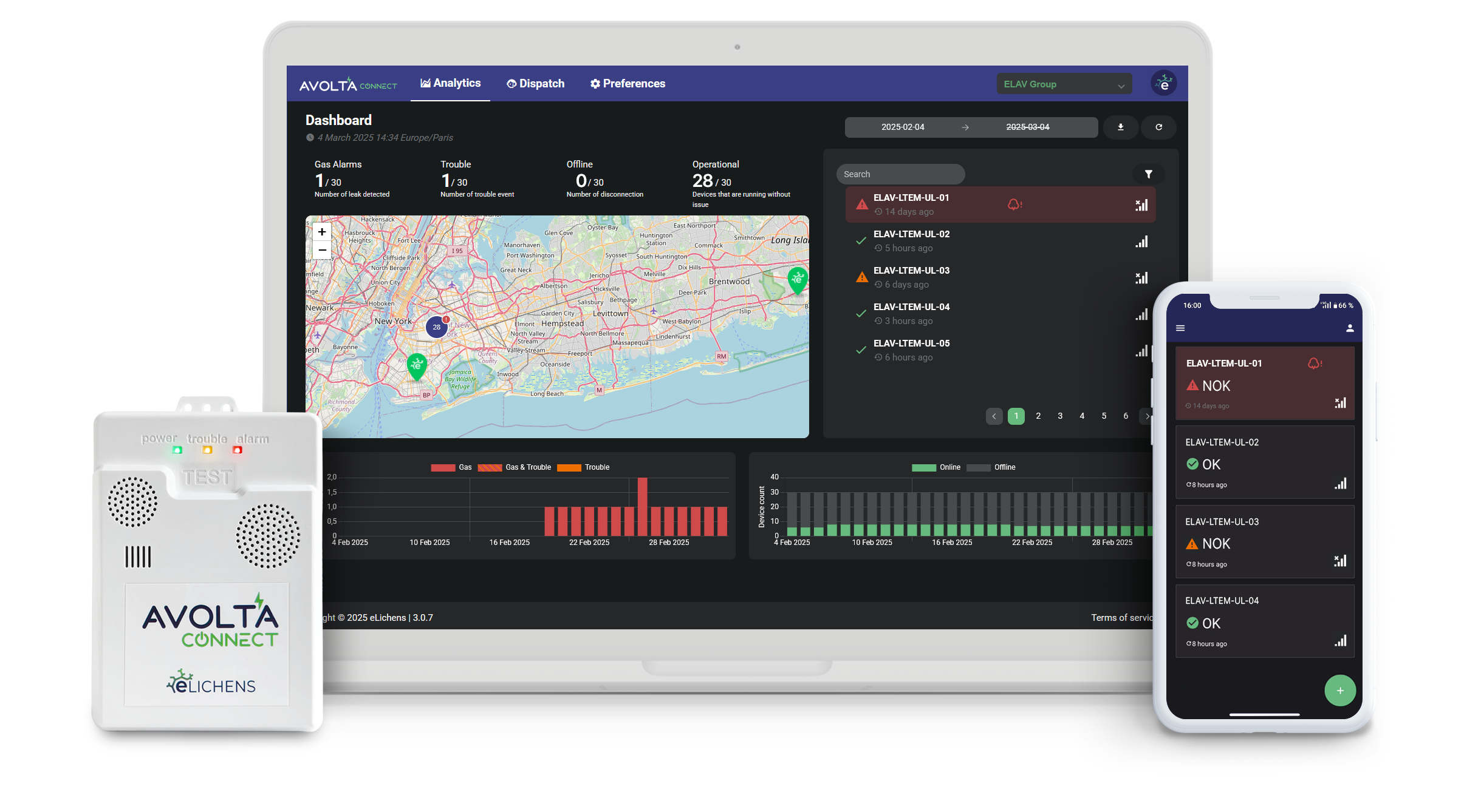 eLichens efficiently solves these challenges by deploying thousands of connected natural gas detectors across urban areas. Leveraging our advanced Avolta Connect sensors paired with the eLichens Cloud Platform, we provide comprehensive, real-time gas monitoring solutions that empower gas utilities to act swiftly and comply fully with local safety laws.